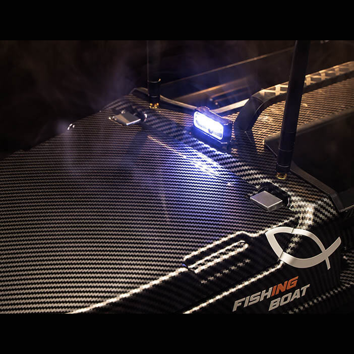 - Яркая фара и задние габариты для хорошей видимости корабля при ночной рыбалке.
