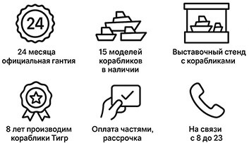 При изготовлении кораблей мы используем ударостойкий и защищенный от солнца пластик. Комплектующие в основном из Европы.